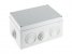 Коробки распределительные типа JBS открытого монтажа с сальниками, IP44 / IP55 / IP65 предназначены для разветвления проводов и кабелей, а также дополнительной защиты мест коммутации. Используются в комбинации с гофрированными, гладкими или армированными трубами для построения силовых или слаботочных сетей. Имеют направляющие для крепления клеммных колодок на дне коробки. Для моделей со степенью защищенности IP55 крышки коробок фиксируются металлическими шурупами.