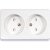 Розетка двойная открытой установки без заземляющих контактов с защитными шторками, (белый)