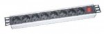 Блок на 8 розеток 16 А 250 В, корпус алюминий, с заземляющими контактами и защитными шторками, с выключателем, размер 19”.